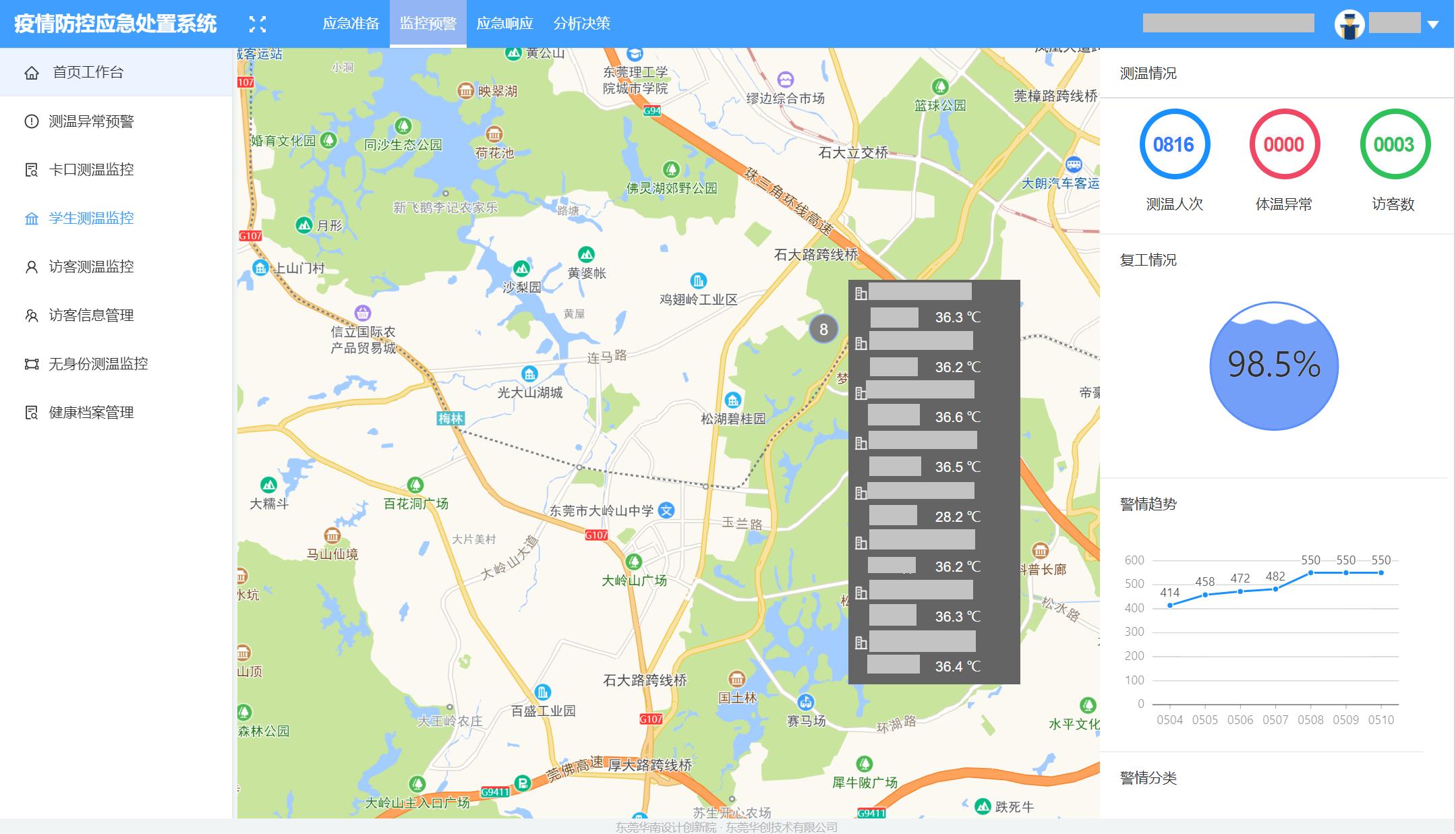 針對複工複産與複學的需要,爲政府應急、疾控、醫院、公安等管理部門和複工企業/學校等單位提供一套全方位實時疫情防控,快速應急處置,支持多部門協同聯動的一種高性價比、輕便部署、簡單易用的信息化平台。